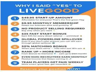 With LiveGood, you can start earning from anywhere - just by sharing a life-changing opportunity that helps people get healthier and wealthier.
