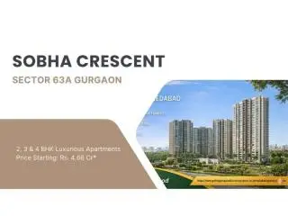 Sobha Crescent Sector 63A Gurgaon is a premium residential project by Sobha Limited, located on Golf Course Extension Road. Spread across around 12 acres, it offers spacious 3 and 4 BHK apartments with modern amenities, green surroundings, excellent connectivity and proximity to business hubs, schools, hospitals ensuring a comfortable lifestyle.
