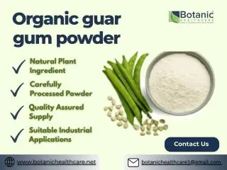 Botanic Healthcare is a reliable manufacturer and supplier of high-quality Organic Guar Gum Powder suitable for food, nutraceutical, ******ceutical, and industrial applications. Our guar gum powder is carefully processed to maintain purity, consistency, and dependable performance standards required by global industries.