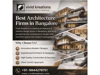 Vivid Kreations is among the Best Architecture Firms in Bangalore, delivering innovative and functional design solutions. We specialize in creating modern residential and commercial spaces with smart planning and creative concepts. Our team focuses on quality, aesthetics, and timely project execution to meet client expectations. We ensure every design reflects your vision while maintaining structural excellence and sustainability. Vivid Kreations combines expertise with creativity to transform ideas into reality. Our commitment to excellence makes us a trusted choice in Bangalore. Contact Vivid Kreations today to bring your dream space to life!