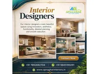 Apna Ghar Interiors is the leading interior designers in Bangalore creating stylish and functional living spaces. We design beautiful interiors that match modern lifestyles and personal preferences. Our team focuses on creativity, quality materials and smart space planning to deliver elegant home interiors. We provide customized interior solutions that increase comfort, style and functionality. Our designs bring together aesthetics and purpose to transform every room into a welcoming space. We maintain careful planning, professional execution and attention to detail on our work. Our goal is to create interiors that reflect your personality while maintaining comfort, beauty and long-lasting quality for every home. Get in touch with Apna Ghar Interiors today for beautiful home interiors.