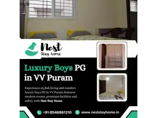 Nest Stay Home provides premium boys PG in VV Puram designed for comfort and modern living. We offer spacious and well-furnished rooms that create a pleasant and relaxing atmosphere. Our interiors are thoughtfully designed to balance style and functionality for everyday needs. We maintain high standards of cleanliness, safety, and convenience across our spaces. Our location makes it easy to access essential services and excellent city connectivity. We focus on delivering a smooth and stress-free lifestyle for students and working professionals. Our amenities are designed to support your daily comfort and convenience. Get in touch with Nest Stay Home today and find your perfect living space.