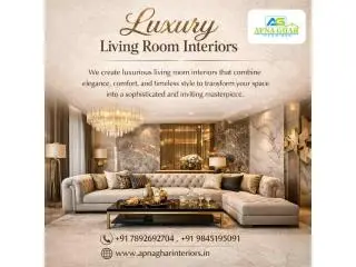 Apna Ghar Interiors creates luxury living room interiors in Bangalore with a perfect balance of elegance and comfort. We design stylish spaces that reflect our lifestyle and preferences. We focus on premium materials, modern layouts, and luxurious finishes to highlight every detail. Our team carefully plans lighting, furniture placement, and decor elements to create a warm and inviting atmosphere. We ensure every design blends functionality with aesthetic appeal. Our approach transforms ordinary living rooms into stylish statement spaces. We deliver customized solutions that elevate our clients homes with classic charm and design excellence. Get in touch with Apna Ghar Interiors today to explore our exclusive design ideas.