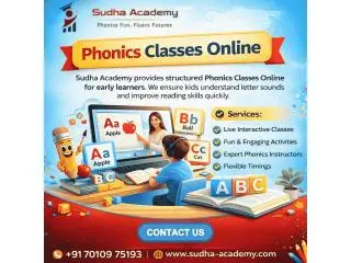 Sudha Academy offers expert Phonics Classes Online in Trichy designed to build strong reading and pronunciation skills for young learners. We focus on interactive, engaging methods to improve phonemic awareness and confidence. Our experienced trainers use proven techniques, fun activities, and personalized attention to ensure effective learning from home. Sudha Academy helps children develop clear speech, better spelling, and strong language foundations. We provide flexible schedules and affordable courses customized to every child’s needs. Join Sudha Academy today and give your child the gift of confident communication enroll now!